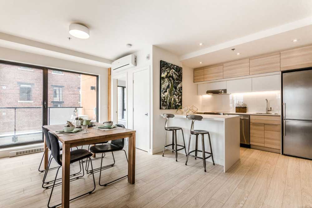 Au cœur du quartier Griffintown en plein essor, ce développement écologique construit à partir d'épinettes noires provenant de la forêt boréale est un espace rassembleur où il fait bon vivre.