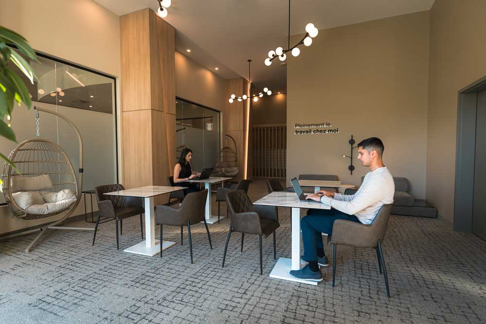 L’aménagement des espaces propose entre autres une abondance d’éclairage naturel, de grands balcons, des bureaux aménagés personnalisés, deux terrasses au toit, une salle d’entraînement, une piscine intérieure, des voitures en libre-service, le tout, favorisant une mixité d’usage. Au rez-de-chaussée de la tour NOVIA, on retrouvera un restaurant de type bistro.