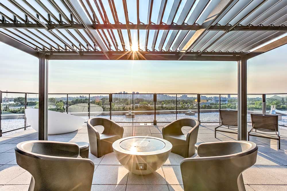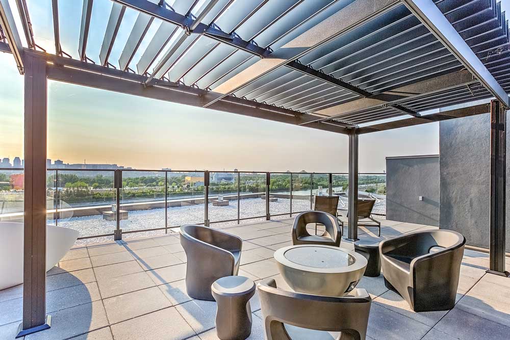 Les propriétaires profitent d’une terrasse sur le toit, d’un aménagement intérieur de qualité supérieure, d’un gymnase, de deux ascenseurs, d’espaces de rangement pour vélo et de bornes pour voitures électriques.